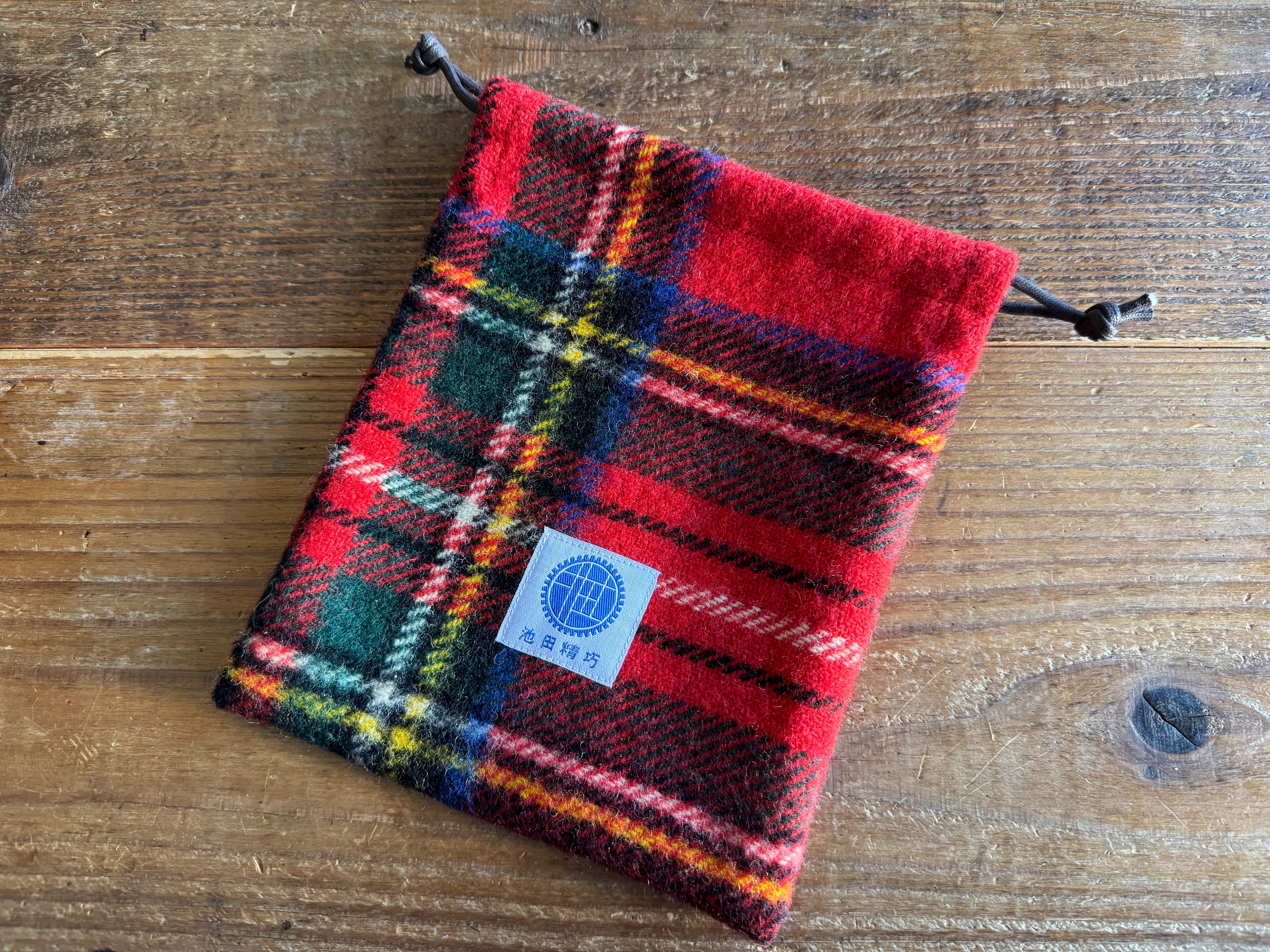 リメイクリールポーチ(大)スコットランドウールレッドタータンA